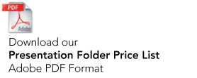 All our corporate presentation folders are printed on strong 310gsm Artboard in full colour and made using our standing die cut.